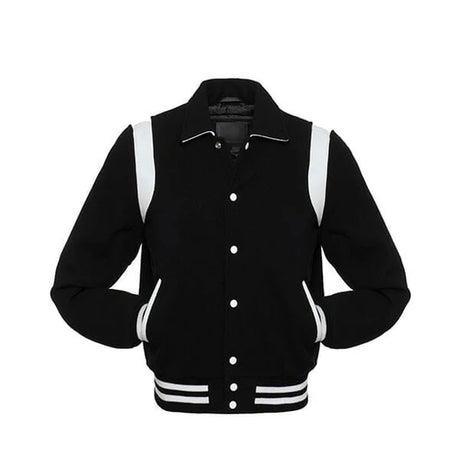 Black Wool Varsity Jacket With White Shoulder Inserts
