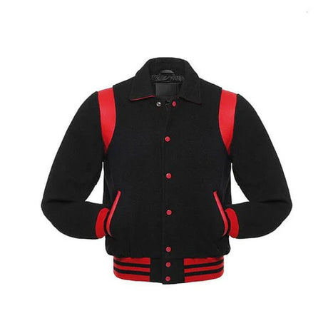 Black Wool Varsity Jacket With Red Shoulder Inserts