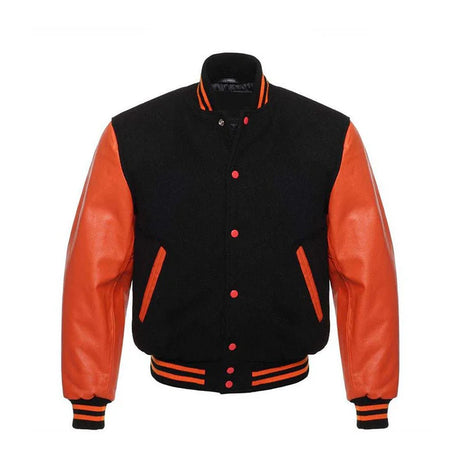 Men's Black Varsity Jacket Leather Sleeves - Orange