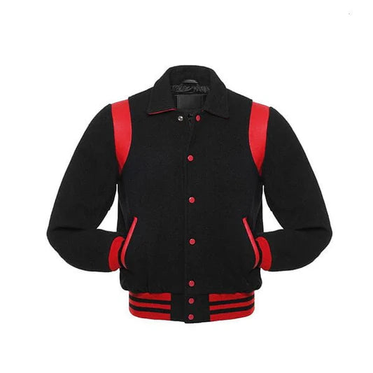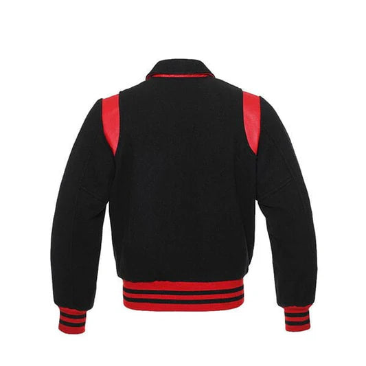 WCMJ2082-Black with red Shoulder Insert Men & Women Letterman Varsity Jacket