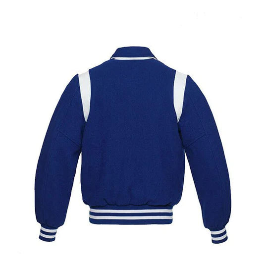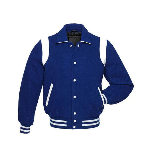 Experience unmatched comfort and style with our Blue Wool Varsity Jacket. Made from high-quality wool, it offers warmth and breathability, keeping you comfortable in any season. The white shoulder inserts not only enhance the jacket's aesthetic appeal but also provide a touch of chic contrast. From casual gatherings to formal events, this jacket effortlessly combines comfort and style, ensuring you look and feel your best wherever you go.