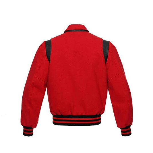 Red Wool Varsity Jacket With Black Shoulder Inserts