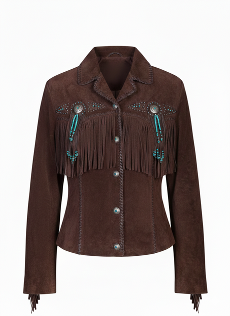 Women’s Native American Style Suede Western Fringe & Beaded Leather Jacket