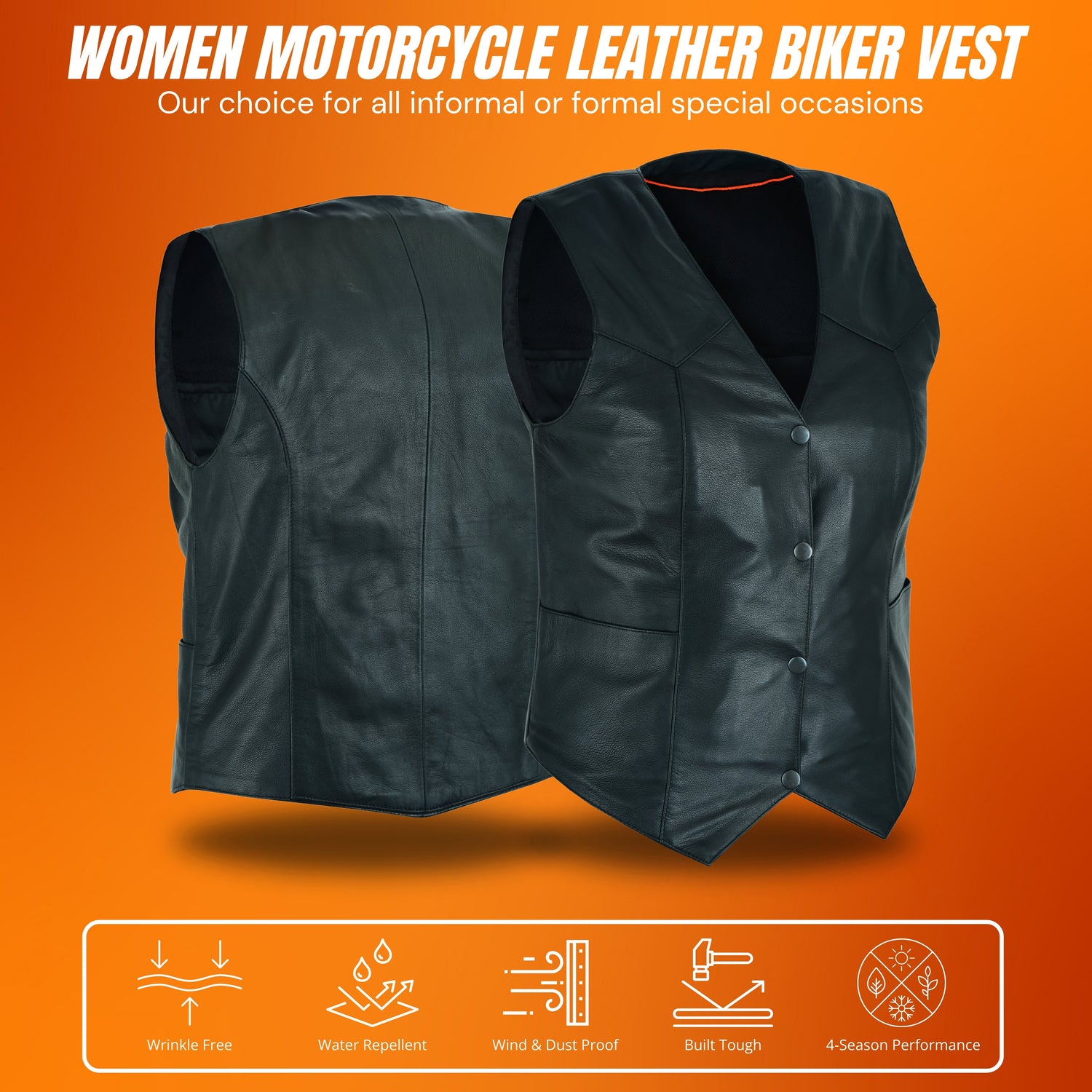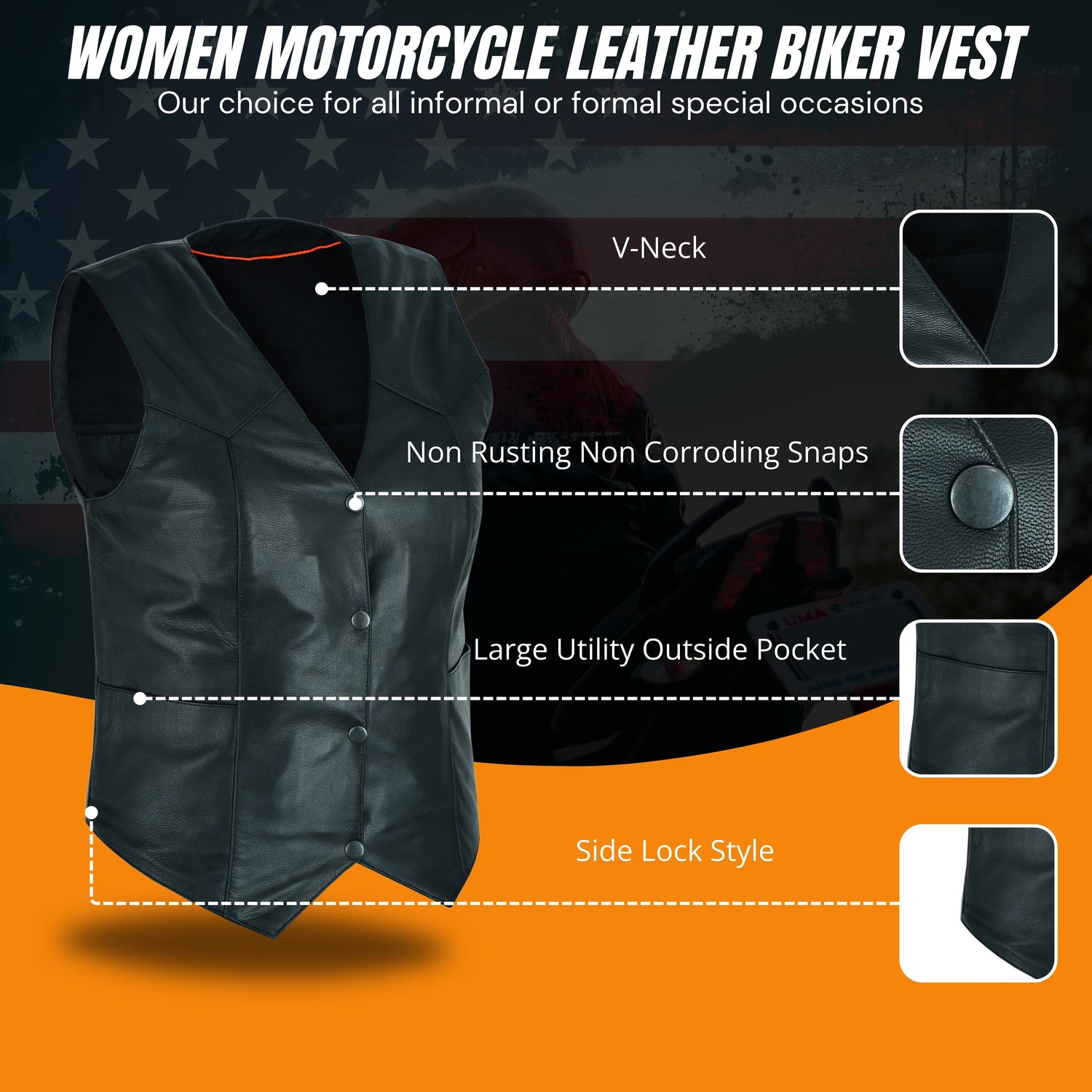 WCWV00541BLACK | Biker Babe - Women's Motorcycle Leather Vest