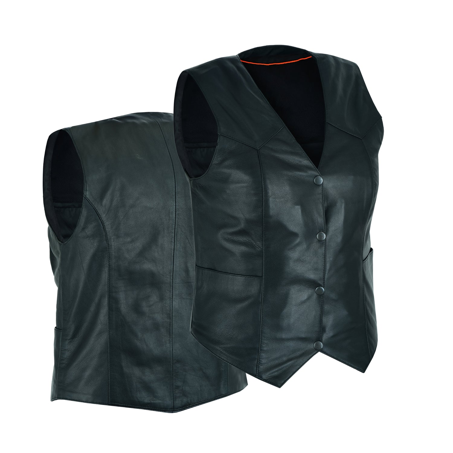 Ladies Women soft leather biker motorcycle vest black concealed carry