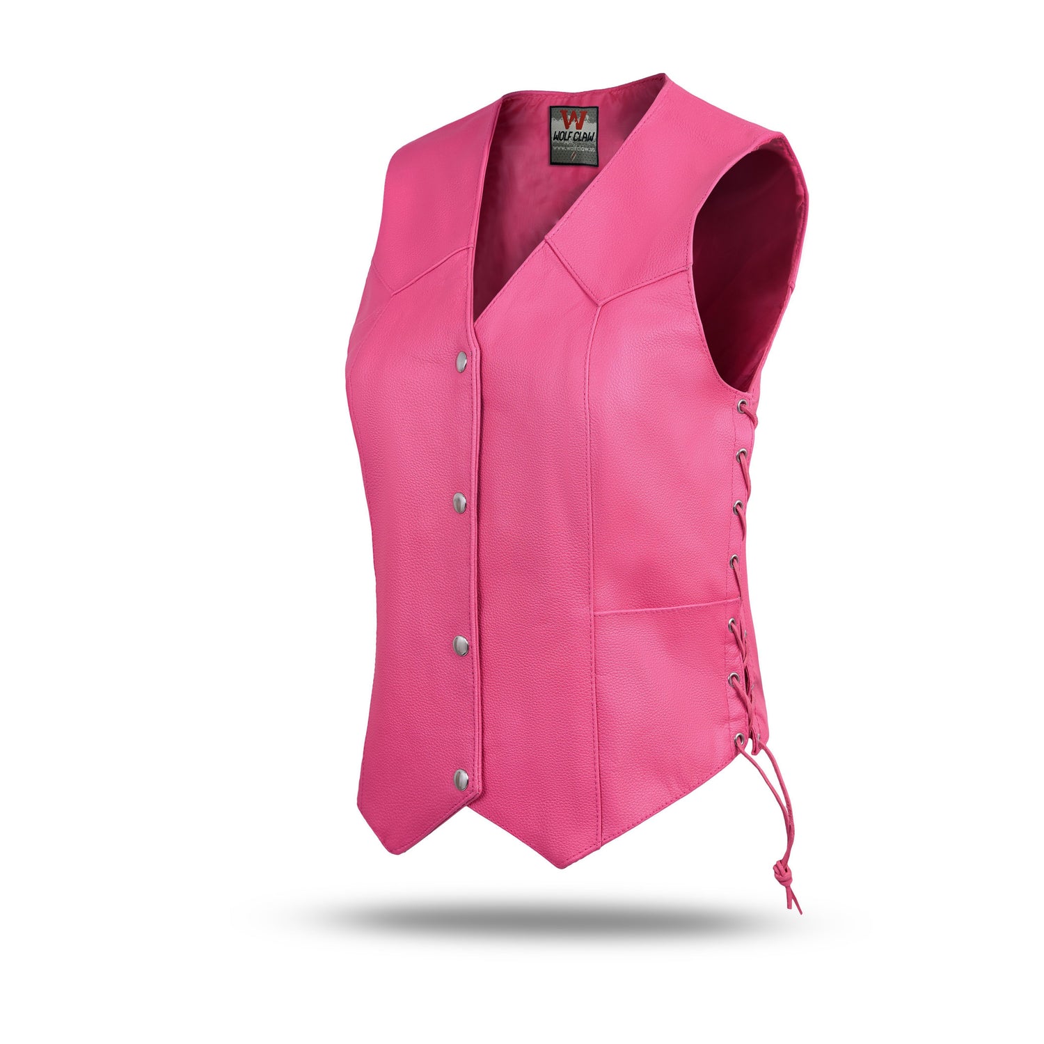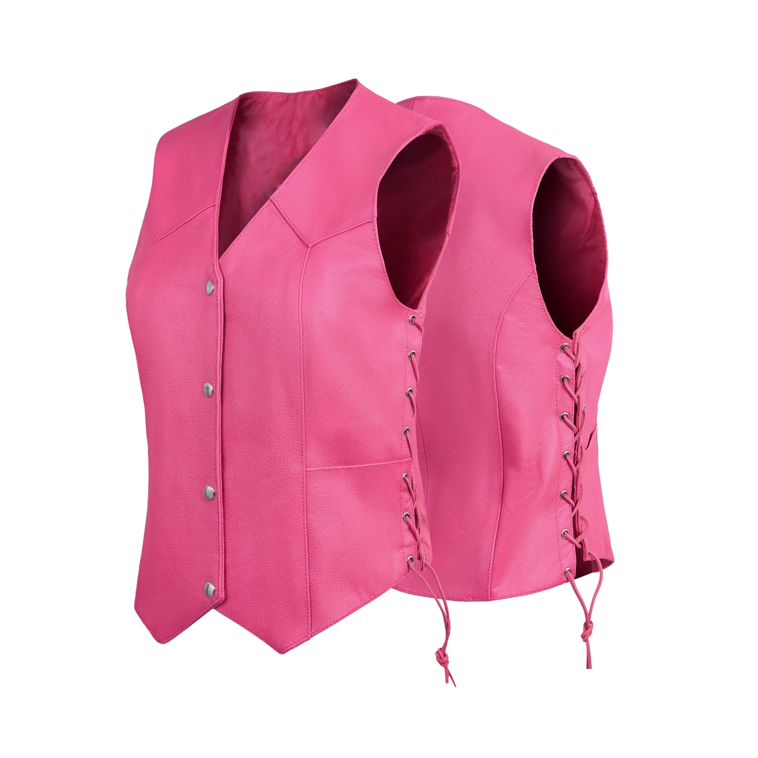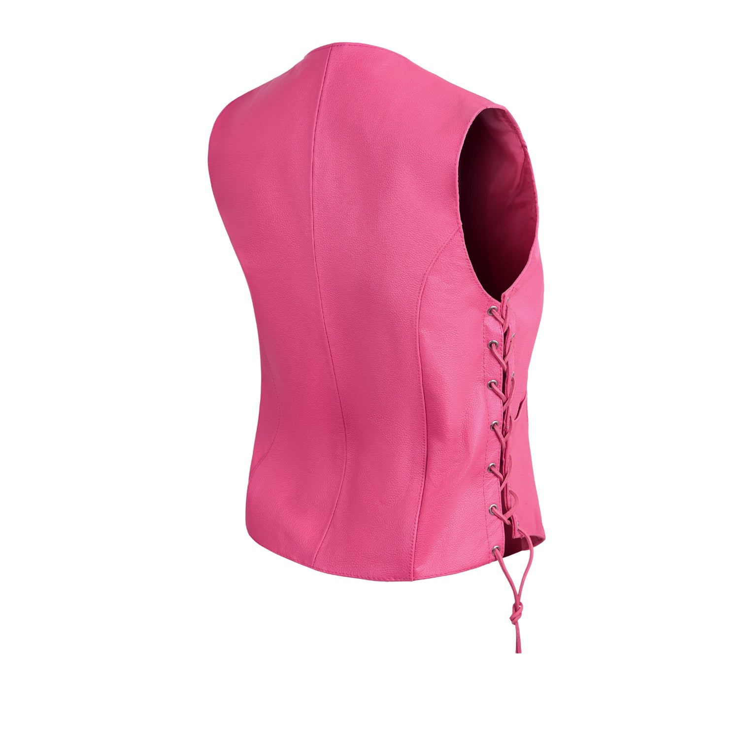 Women's Hot Pink color side laced Gun pockets Leather Vest