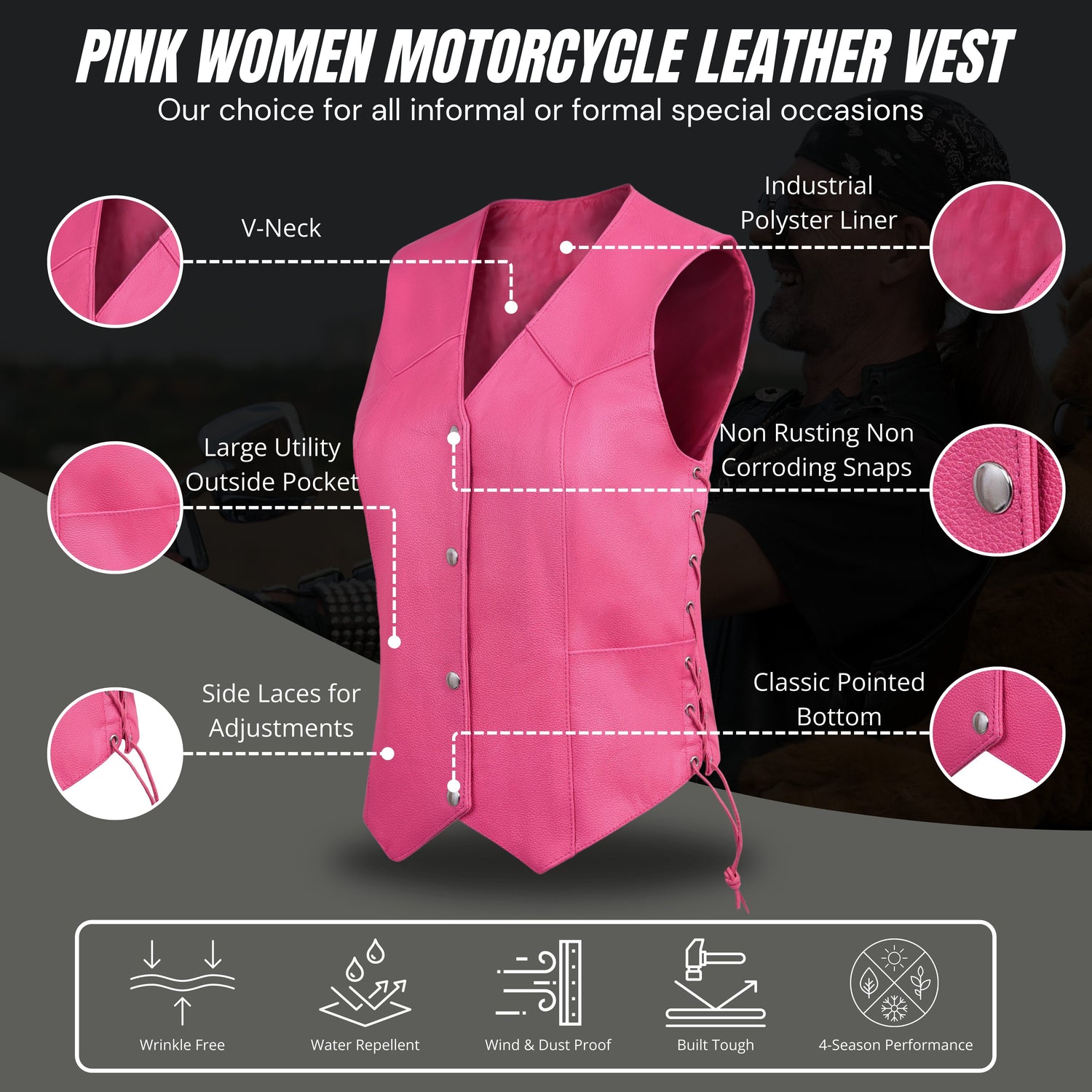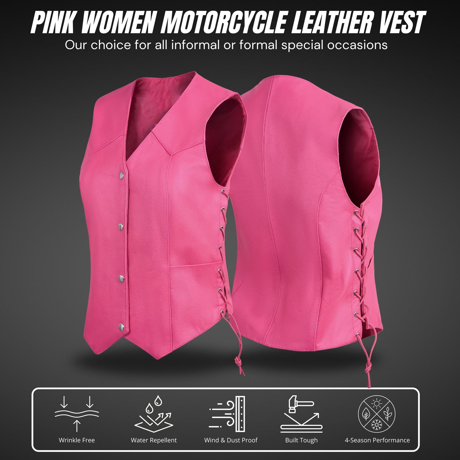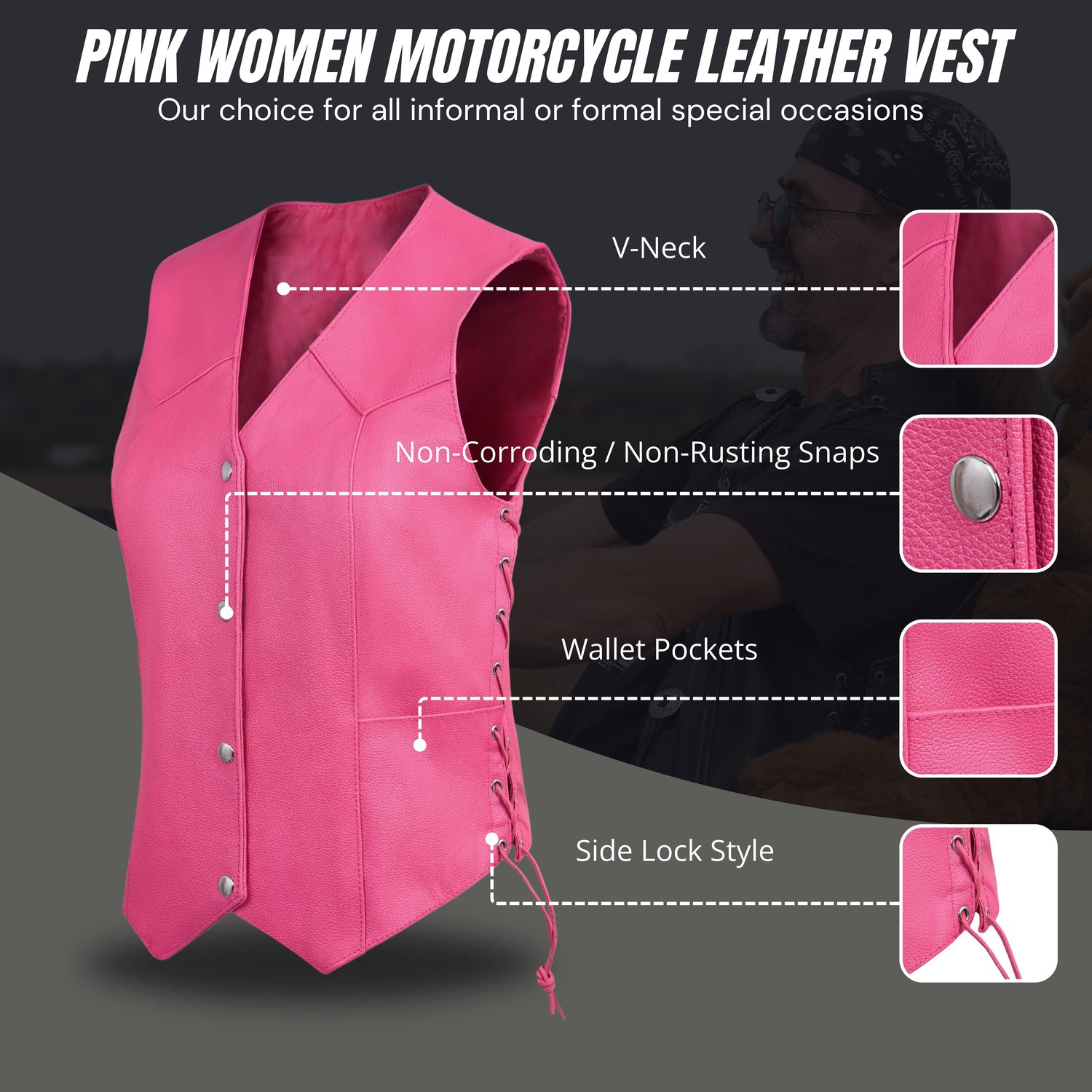 Women's Hot Pink color side laced Gun pockets Leather Vest