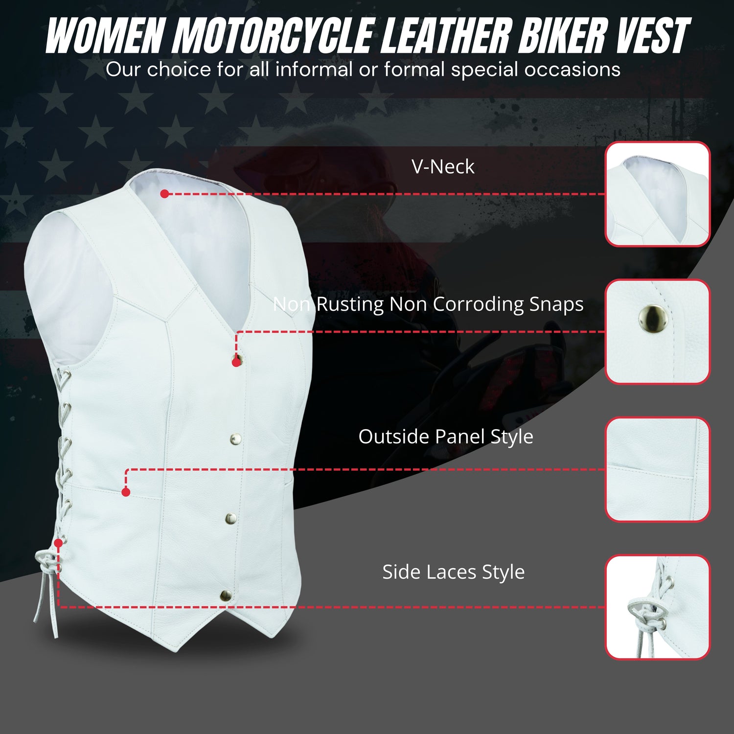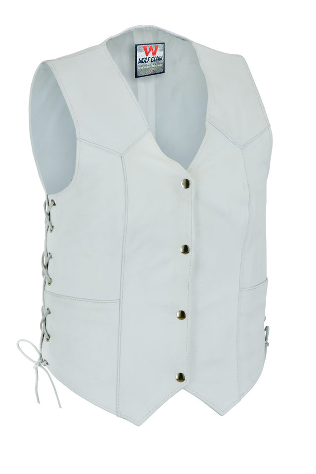 White Leather - Women motorcycle Vest Biker Club Concealed Carry