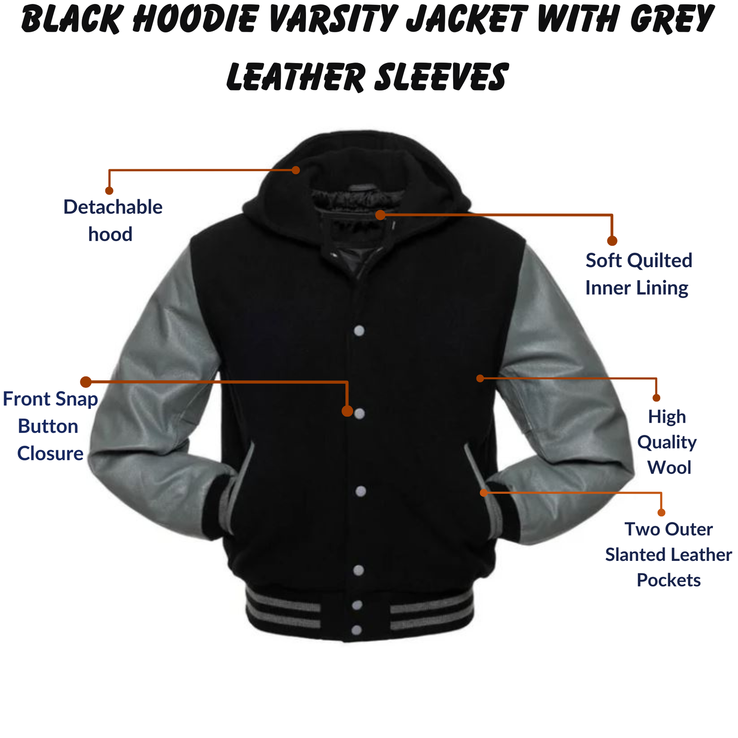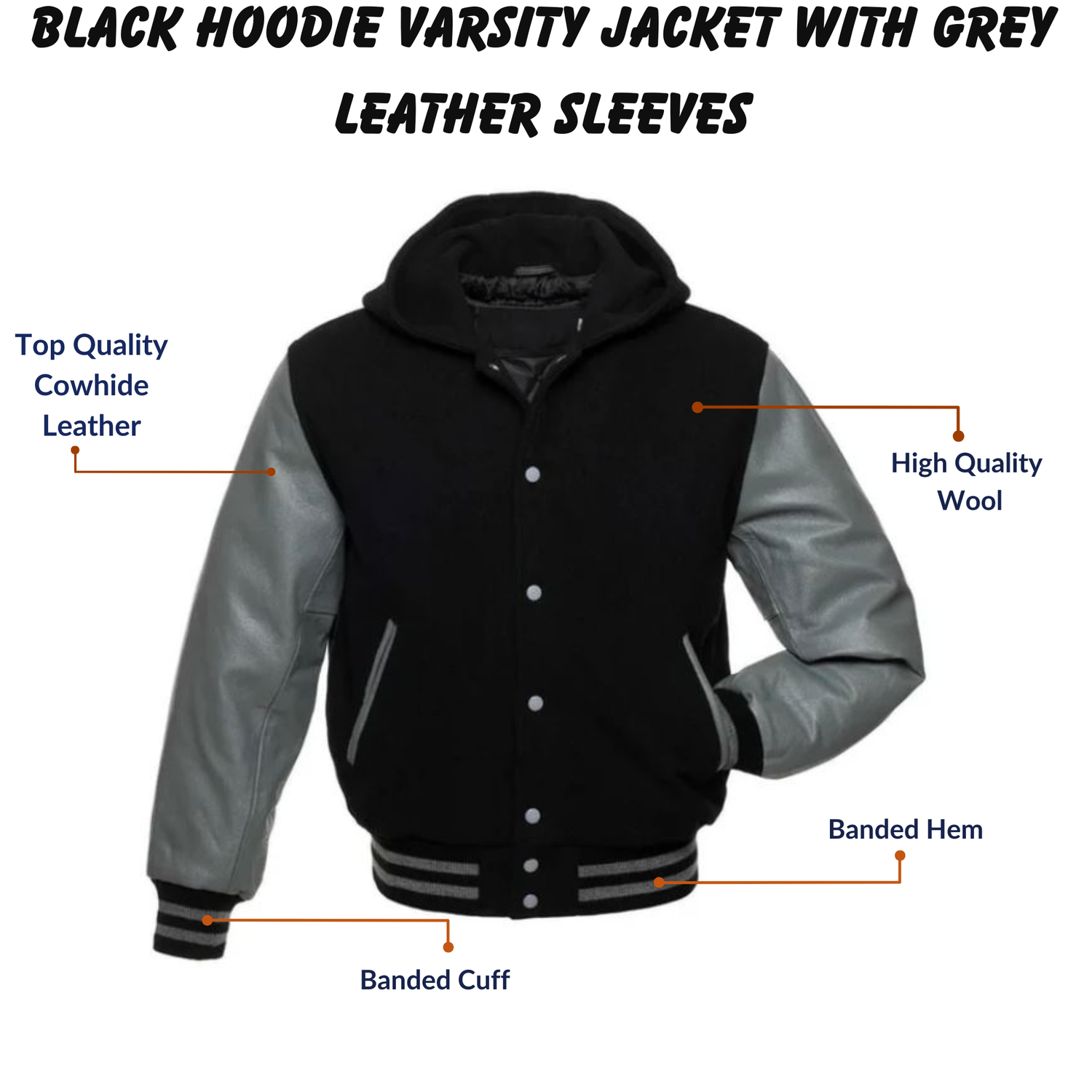 Upgrade your style quotient effortlessly with our Black Hoodie Varsity Jacket featuring sleek Gray Leather Sleeves. Embrace the epitome of urban chic as you step out in this versatile piece that seamlessly combines comfort and sophistication.