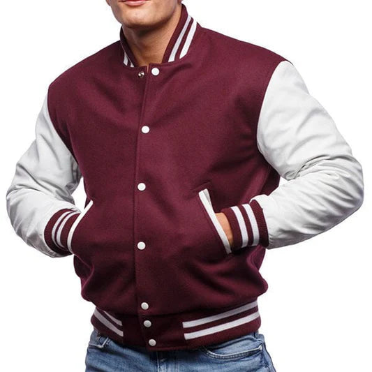Maroon Wool & White Sleeves Leather Letterman Jacket